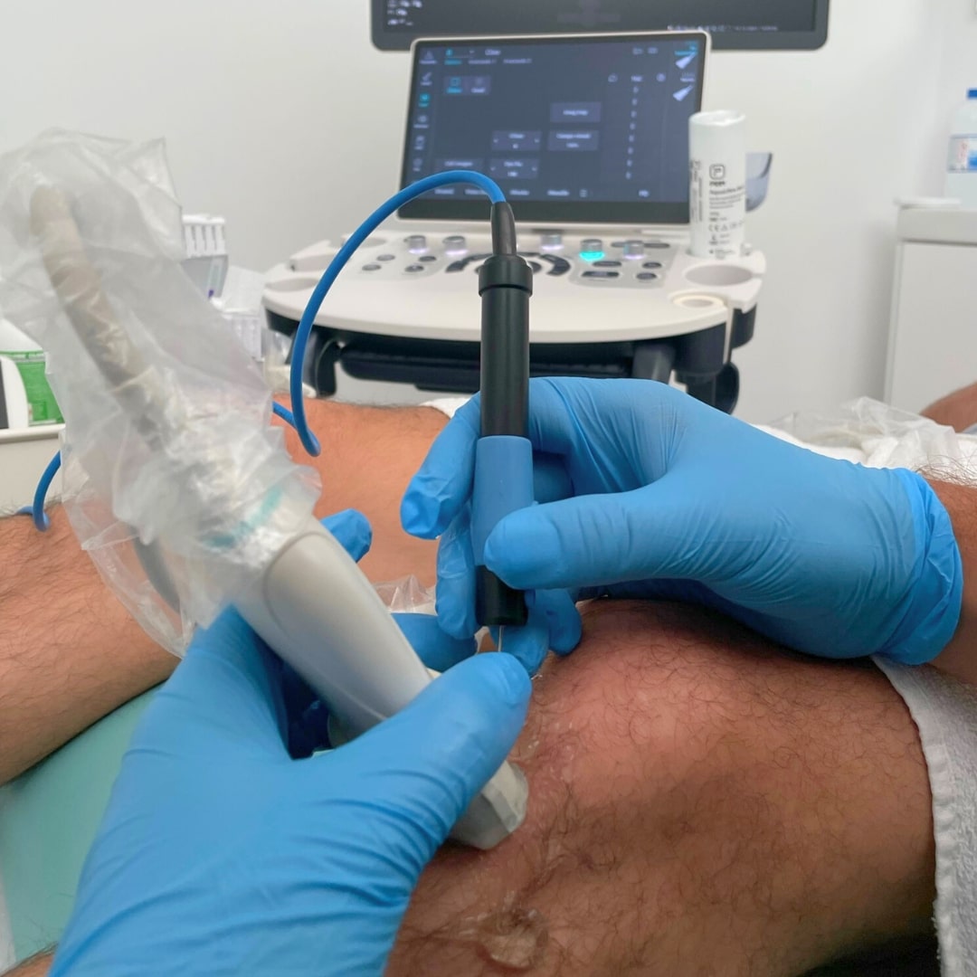 Este tratamiento, realizado de forma ecoguiada, emplea un ecógrafo para guiar la aguja de punción de manera precisa en el tejido afectado, asegurando que la intervención sea lo más exacta y segura posible. A través de este procedimiento mínimamente invasivo, se consigue un efecto analgésico y un proceso inflamatorio controlado en el área tratada, lo que favorece la reparación y regeneración de los tejidos.